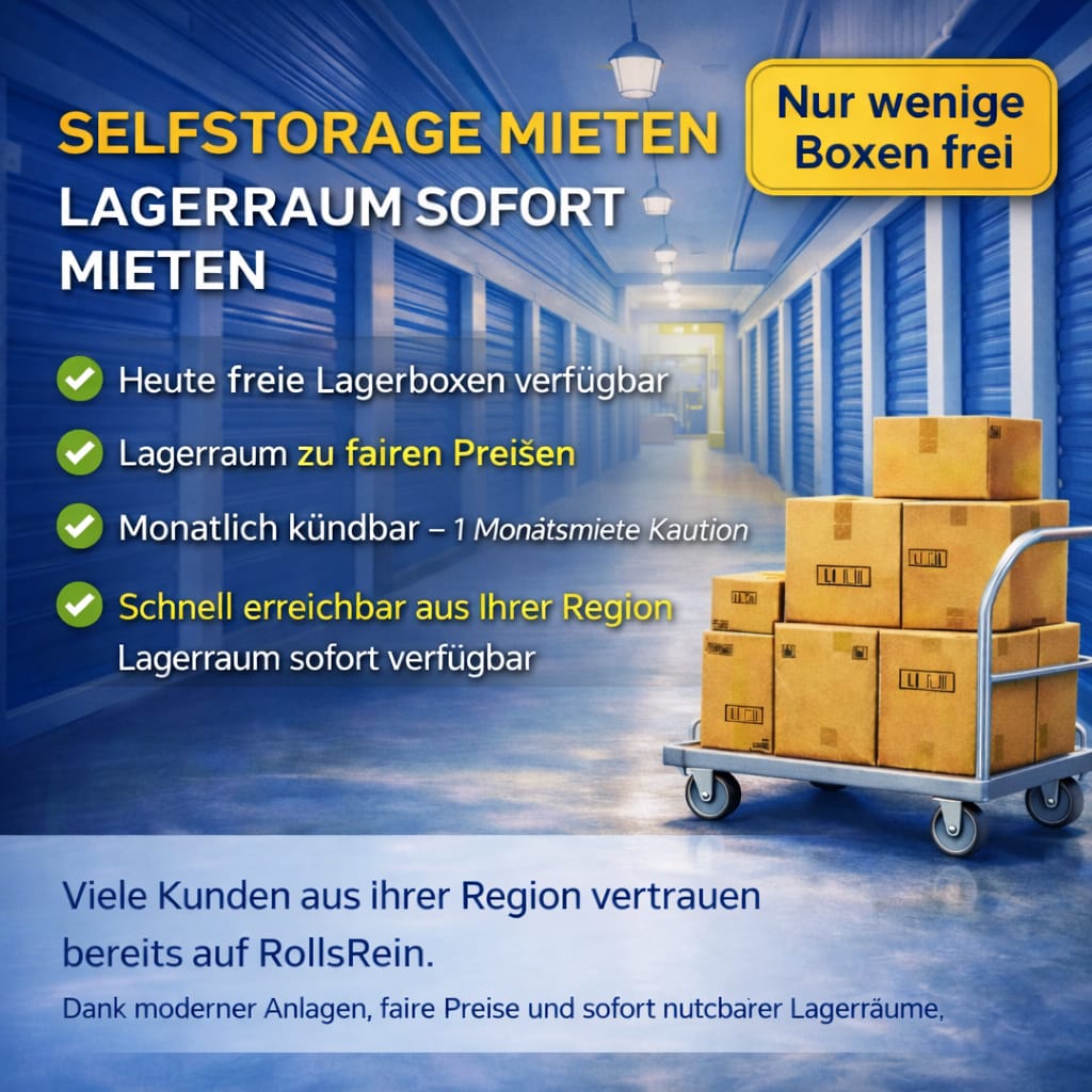 Ob kurzfristige Lagerung beim Umzug, Renovierung oder langfristiges Selfstorage für Ihr Unternehmen: Rollsrein bietet Ihnen individuelle Lagerlösungen in verschiedenen Größen – optimal erreichbar für Kunden aus Mannheim und Umgebung.
